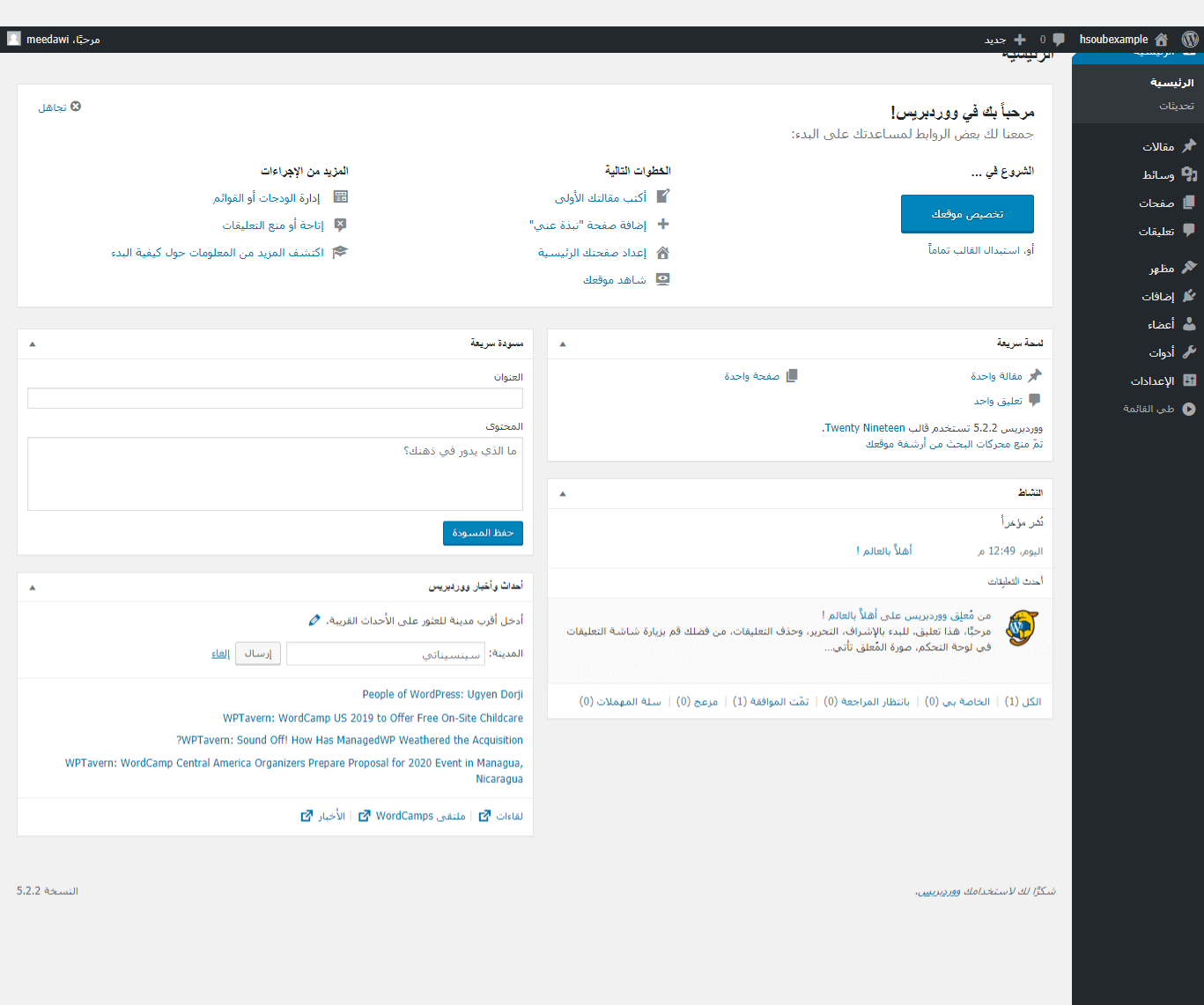 لوحة التحكم هي مركز إدارة الموقع وتشمل: