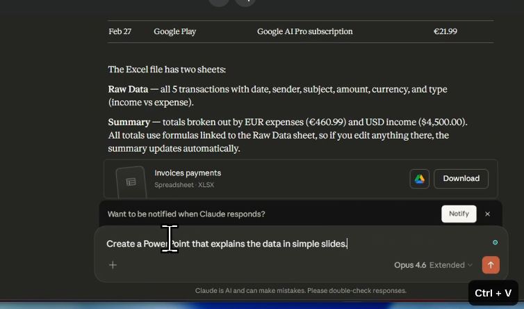 ستخدام Gmail وExcel وPowerPoint لإنشاء أي شيء على جهازك باستخدام ملفاتك وبياناتك الخاصة من خلال محادثات بسيطة.