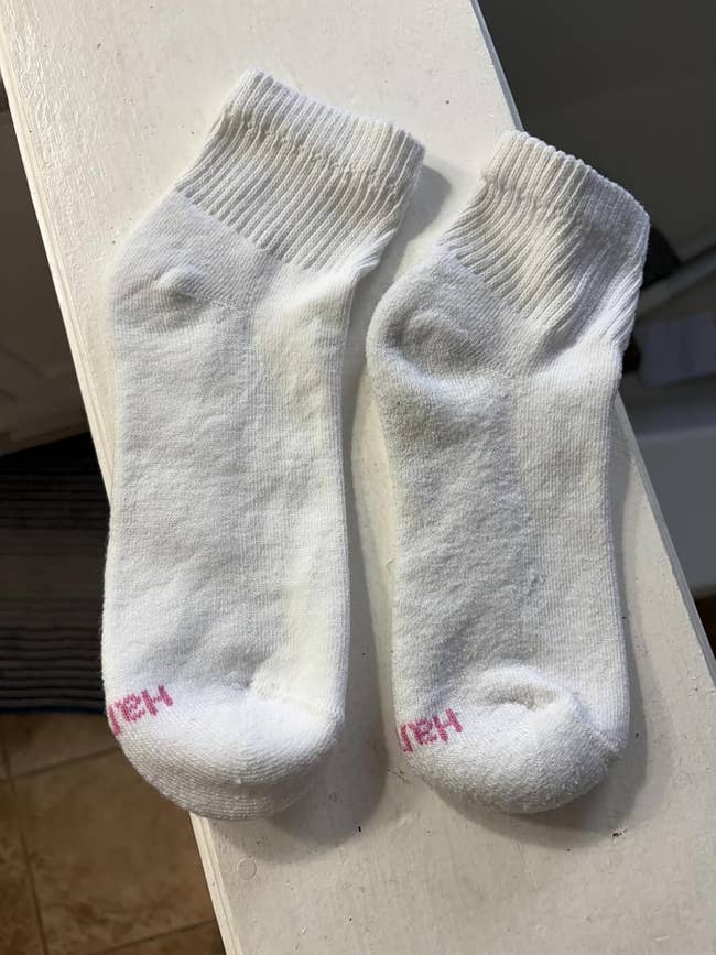I personally have both the Aritzia TNA socks *and* these Hanes socks, and now the Hanes are all I’ll buy! They are the perfect everyday sock with sneakers or slides, the perfect height, and the thick, cushy bottom is everything. I’ve walked for miles and miles and miles in them, and they haven’t worn out yet.