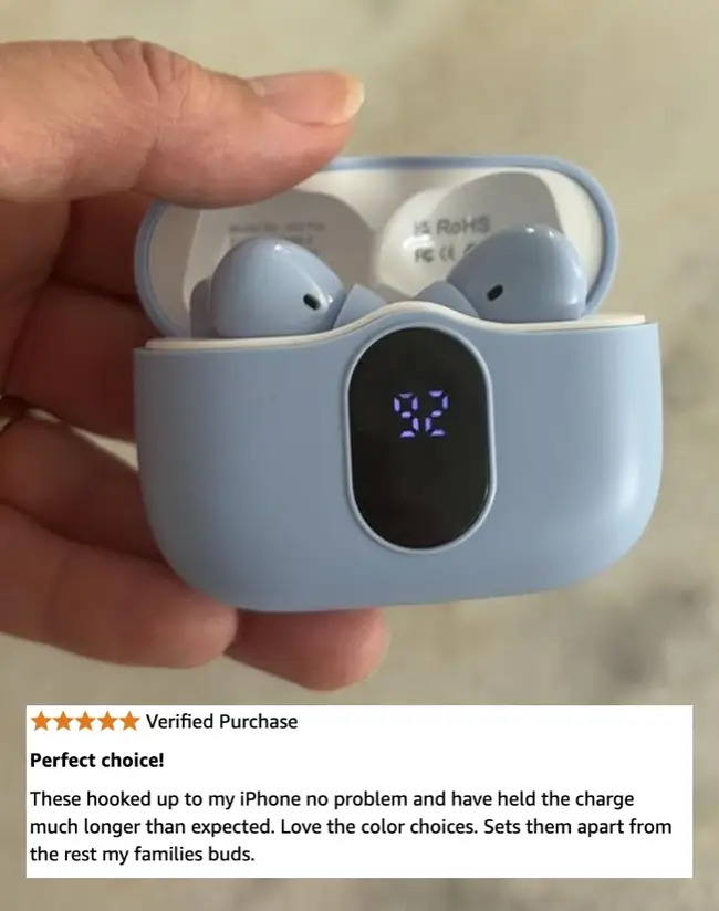 Promising review: “I have used these for about a month now, and they have been great! I had Apple brand AirPods for years, but didn’t want to spend that much this time, so I was looking for an alternative. I went through several from Amazon ’til I found these, and let me just say they are worth every penny!! I use them a lot, and I’ve charged them maybe two times this whole month. The purple color is an added bonus! Look no further, buy these!” —Amazon Customer